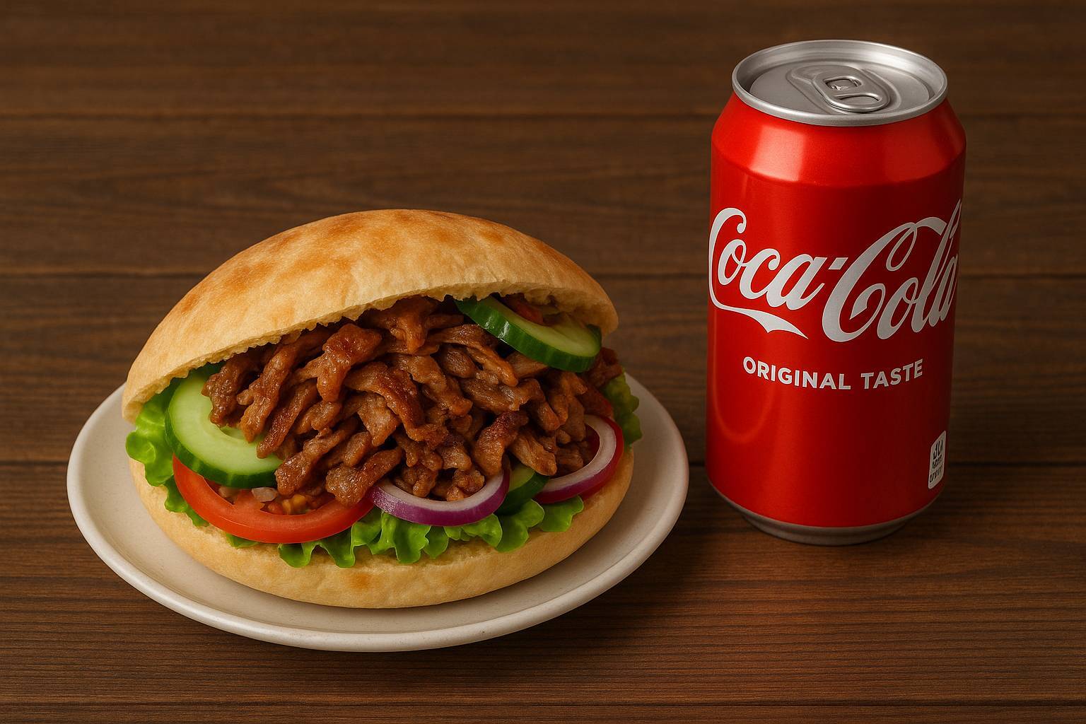 Zur Wiedereröffnung mit dem neuen Team heissen wir Sie herzlich willkommen – mit einem frisch gebackenen Taschenbrot-Kebab, kombiniert mit einer Cola-Dose.